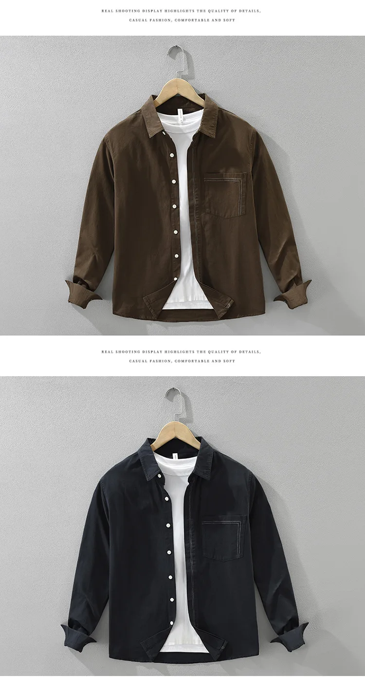 2025 Autumn New Casual Cargo Soft Cotton Long Sleeve Shirt for Men Clothing Versatile Streetwear CM7686
