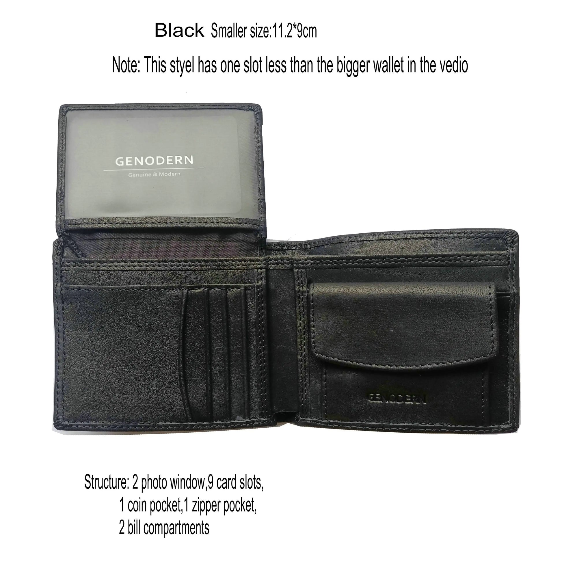GENODERN Cow Leather Men Wallets with Coin Pocket Vintage Male Purse RFID Blocking Genuine Leather Men Wallet with Card Holders