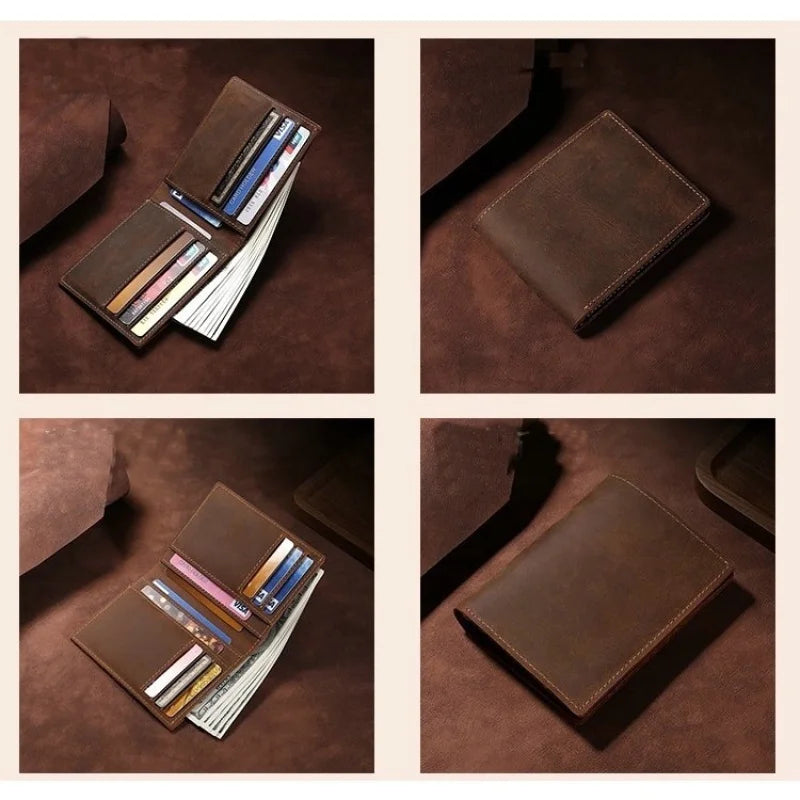 GENODERN Crazy Horse Leather Men's Wallet Vintage Cow Leather Wallet for Men Slim Male Purse