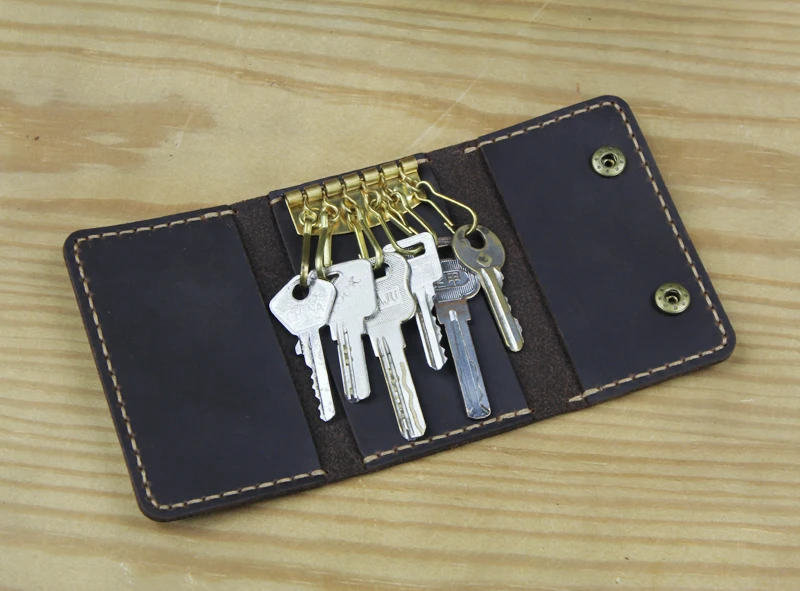 100% High Class Handmade men Genuine Leather key holder Leather key wallet men housekeeper women key case Bag key organizer pouch