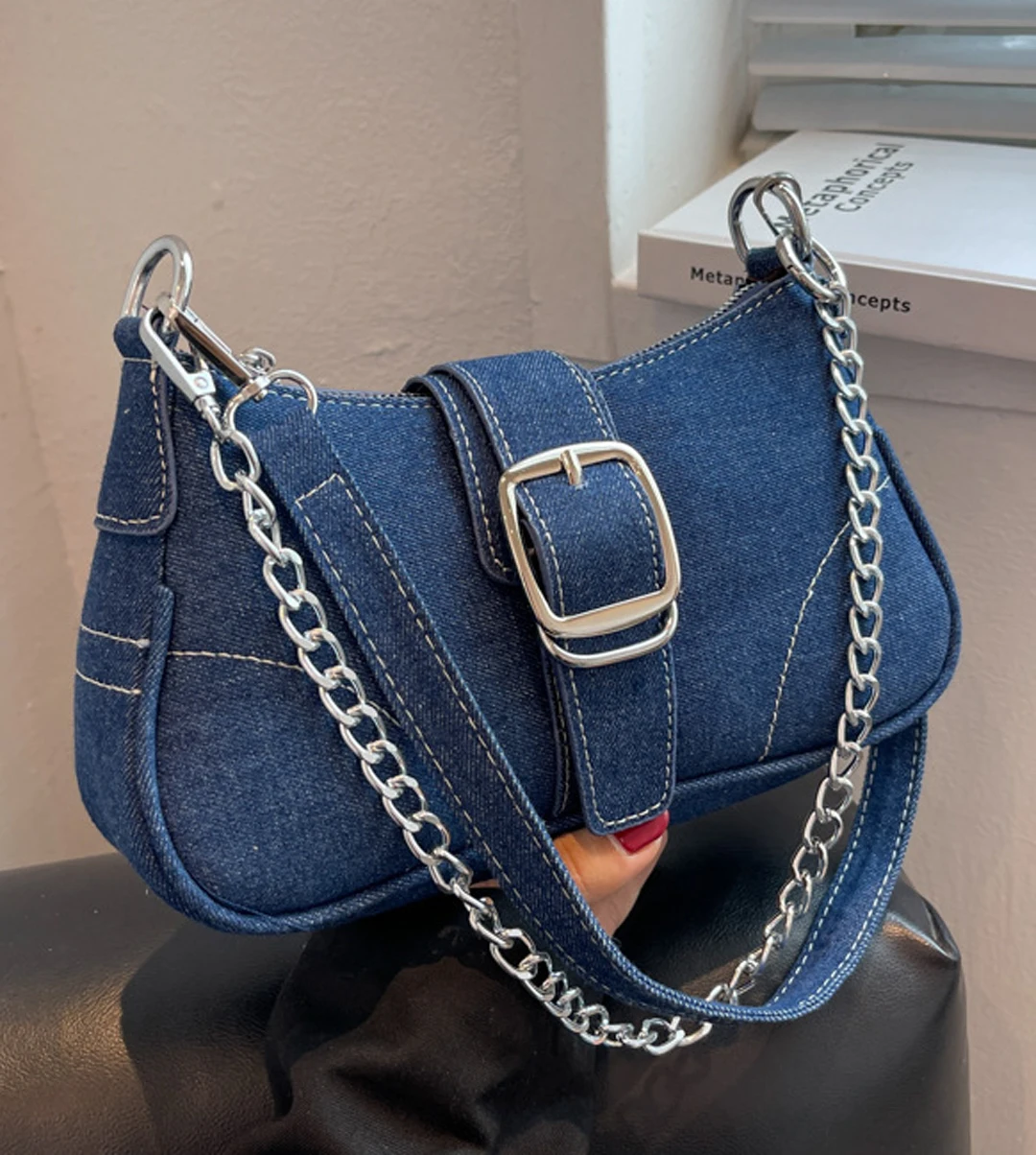 High end denim small bag women's bag 2025 new European and American style fashionable single shoulder crossbody bag chain