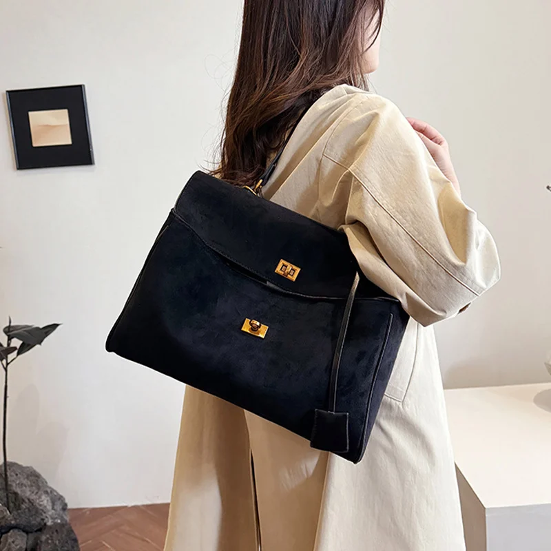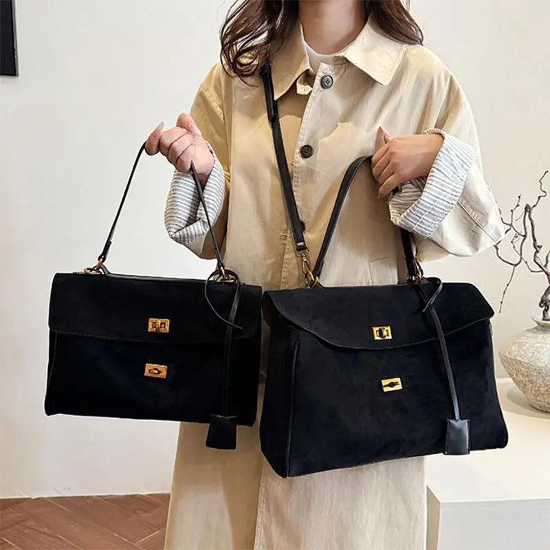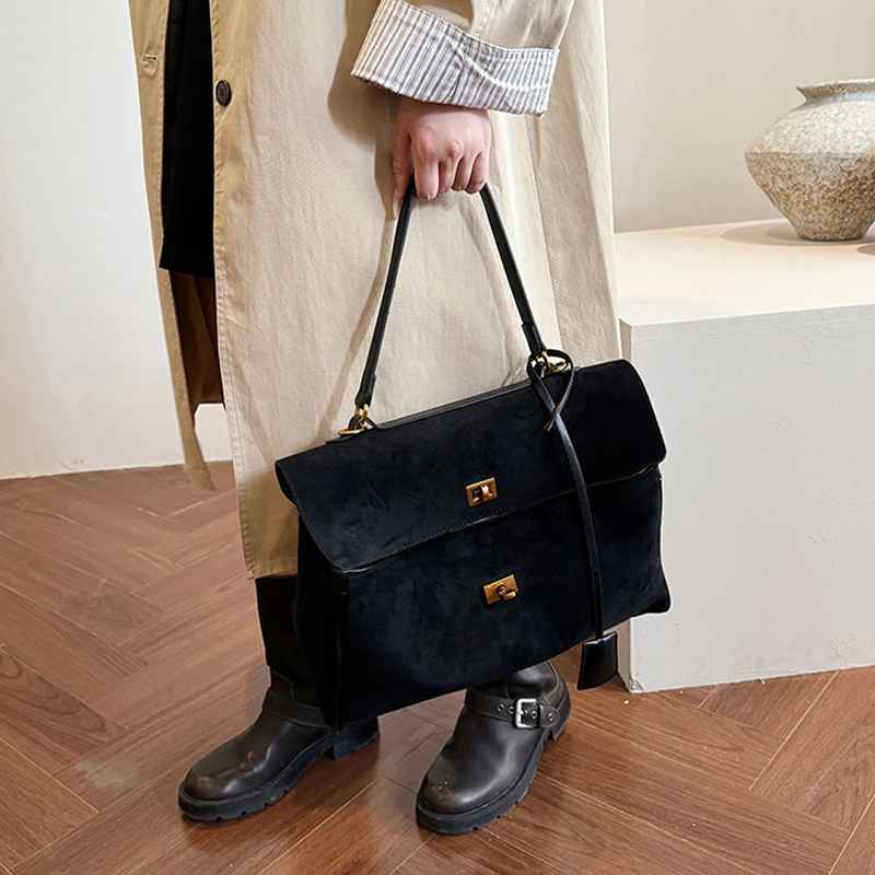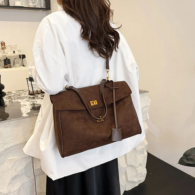 Luxury Brand Women Messenger Bags Soft Leather Brown Suede Hand Held Totes Gold Buckle Women Shoulder Bags Lady Trend Satchel