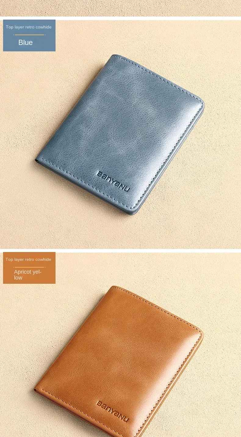 Men's Blue Money Bag Genuine Leather Rfid Wallet for Men Slim Vertical Wallets Black Thin Short ID Credit Card Holder Minimalist