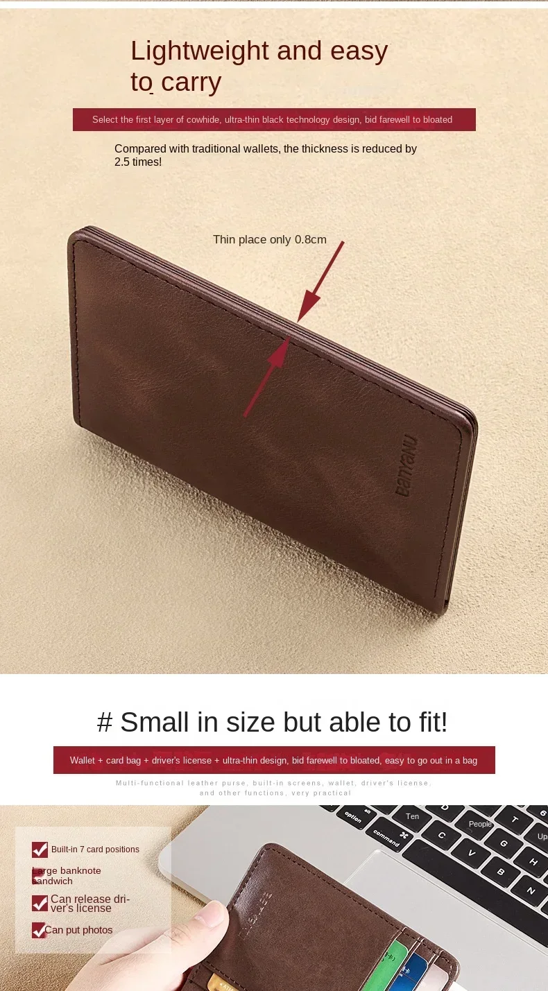 1.Ultra slim wallet for men, easy to put into pocket or bag.