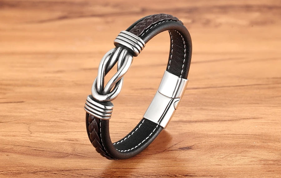 TYO Geometric Stainless Steel Men's Leather Bracelet Hand-woven Magnetic Clasp Black Blue Leather Bangle Christmas Jewelry Gift