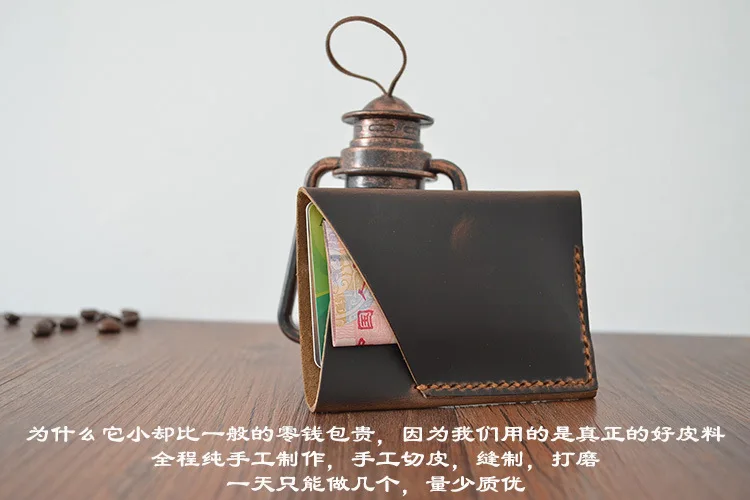 Vintage Handmade Crazy Horse Genuine Leather Card Wallet Small Purse Men Credit Card Holder Women Bus Card Sleeve ID Card Holder